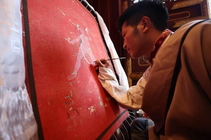 唐卡画师现场绘制