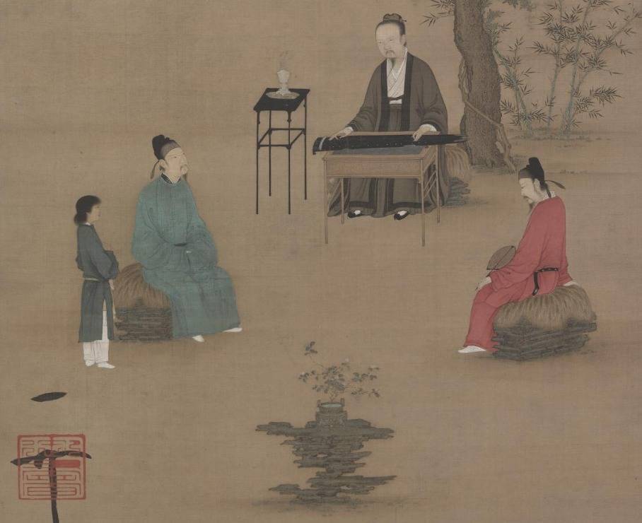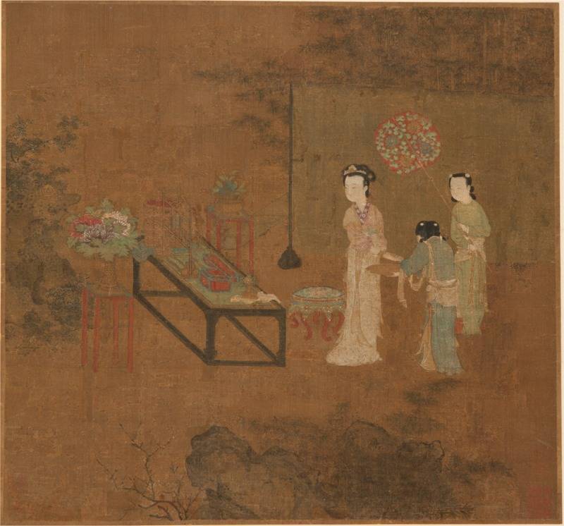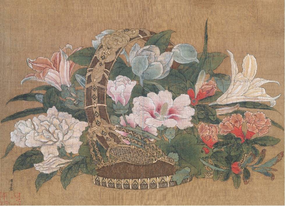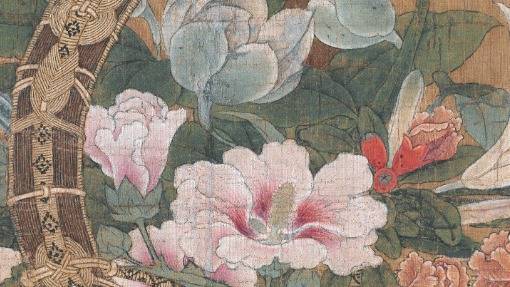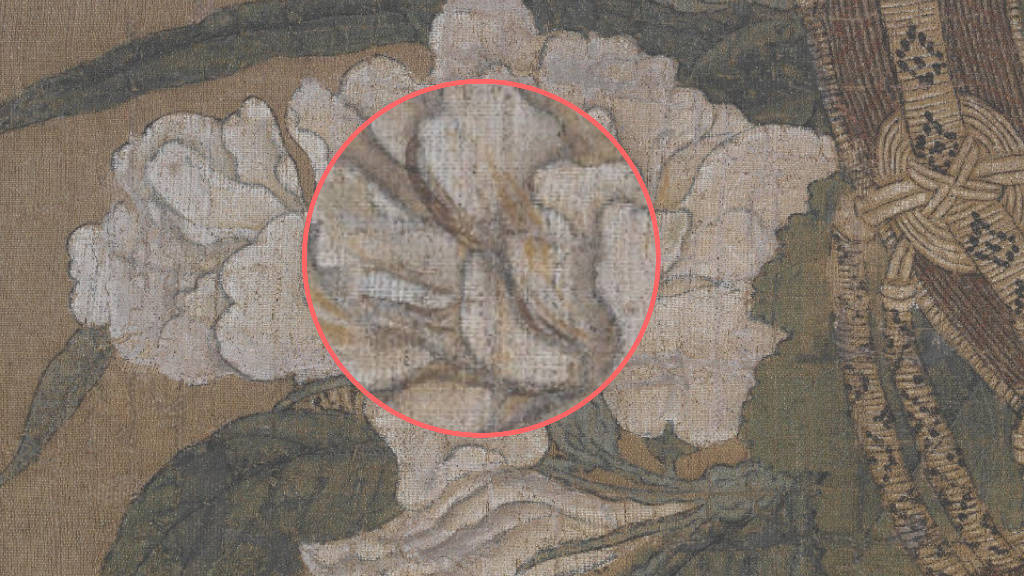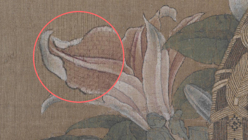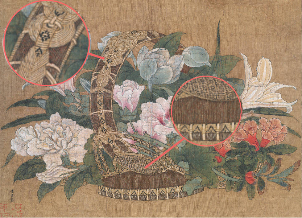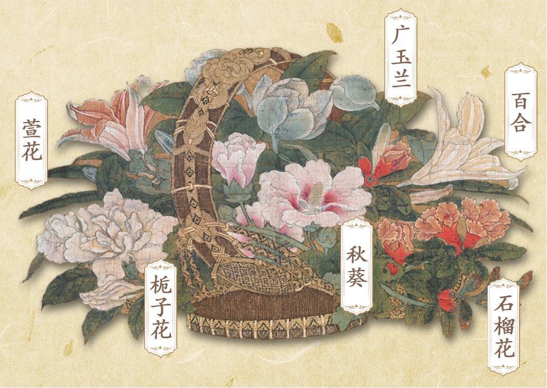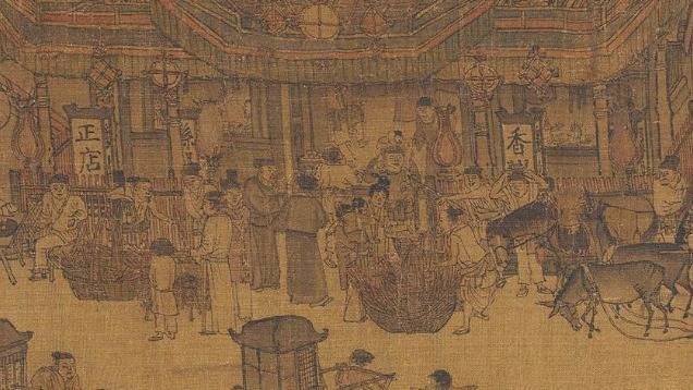 △《清明上河图》中“孙羊正店”门口的鲜花摊,市民正在买花。